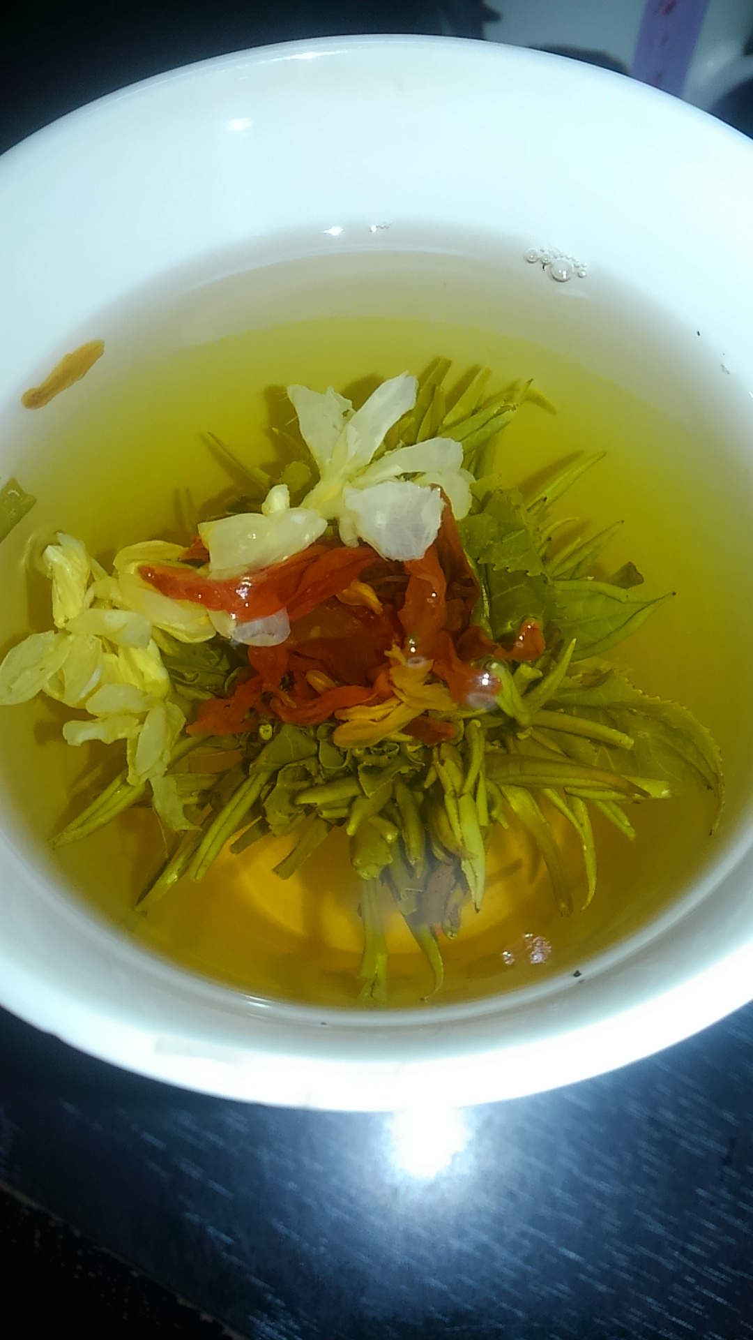 右のがお湯かけたら咲くっていったお茶。けっこうグロテスクになってしまって、三日放置したら腐って茶色くなってしまった……。